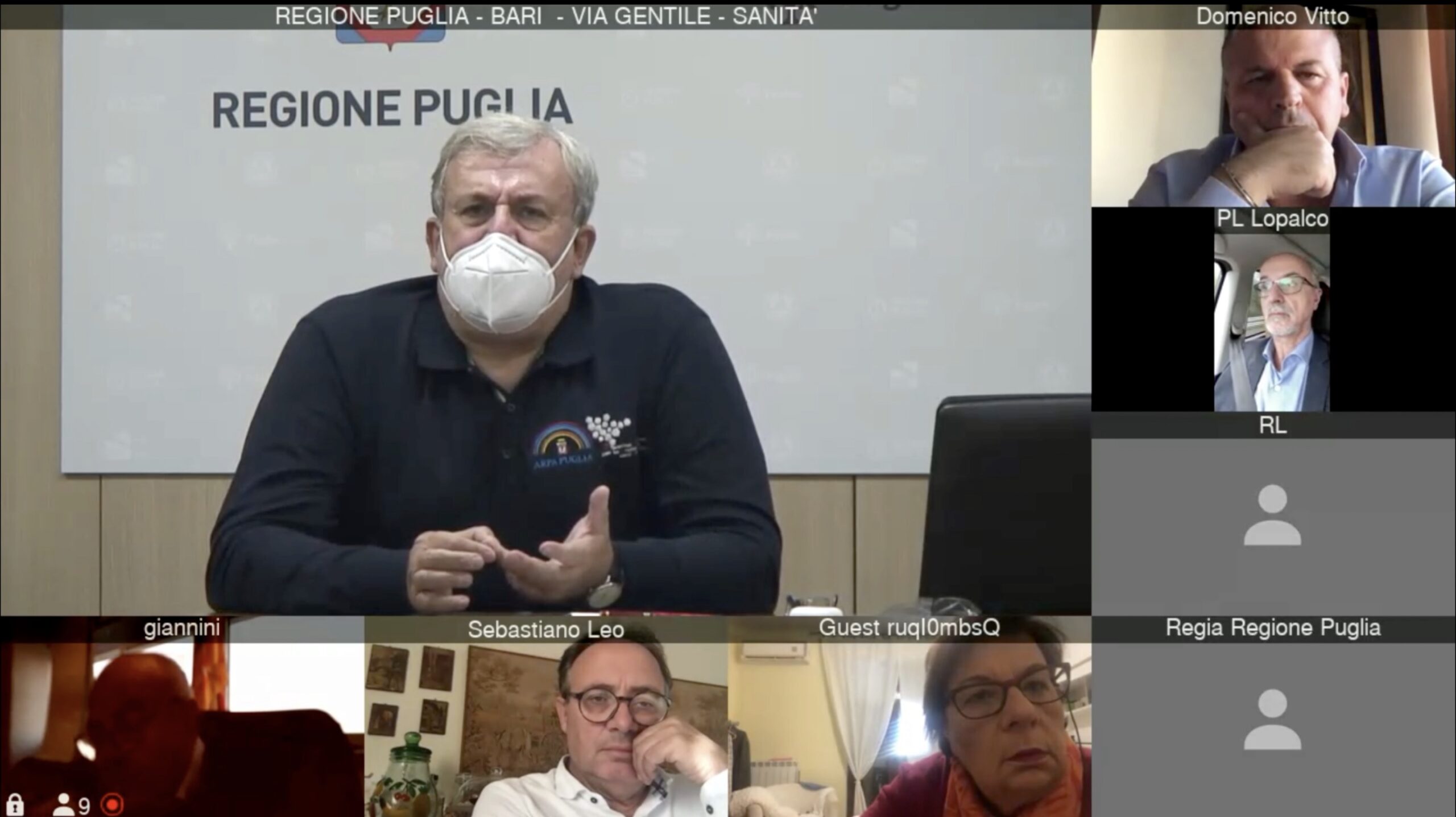 Hanno partecipato gli assessori alla Scuola Sebastiano Leo e ai Trasporti Gianni Giannini, il prof. Pier Luigi Lopalco, il direttore del Dipartimento Salute Vito Montanaro, la direttrice dell’Ufficio scolastico regionale Anna Maria Cammalleri, il presidente Anci Puglia Domenico Vitto, il dirigente della protezione civile regionale Mario Lerario, il capo di Gabinetto Claudio Stefanazzi e il capo dell’Avvocatura regionale Rossana Lanza.