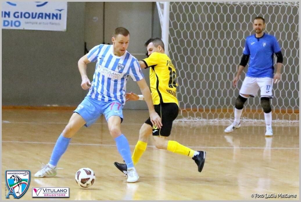 Archiviata la brutta prova e pesante sconfitta nel turno infrasettimanale con il Ciampino Aniene, il Vitulano Drugstore C5 Manfredonia torna nuovamente in campo, nella 4° di ritorno del campionato di serie A di calcio a 5. Altro match molto difficile per i biancoceleste, che chiudono il tour de force del mese di Febbraio, affrontando i partenopei di mister Basile in un ottimo momento di forma. Gli azzurri, dopo un avvio incerto di torneo, sono stati capaci di inanellare 10 risultati utili consecutivi con le ultime due vittorie importanti contro l’Opificio 4.0Cmb Matera ed in esterna lo stesso Ciampino Aniene, ultimo avversario dei sipontini. Il Napoli Futsal è attualmente terzo in classifica, dietro solo alla capolista SynBios Petrarca e ai campioni d’Italia dell’Italservice Pesaro. All’andata terminò con la vittoria di misura per 2-3 dei campani, al termine di un incontro combattuto. Gli uomini di Monsignori sono chiamati ad una nuova impresa esterna sul parquet di Cercola, dopo i punti insperati colti proprio sui campi delle prime due del girone. Un esame probante per il team sipontino dal quale ci si attende una risposta sul piano caratteriale e una prestazione all’altezza delle precedenti che hanno consentito al Vitulano Drugstore C5 Manfredonia di risalire in classifica e lottare per la permanenza nella massima categoria.