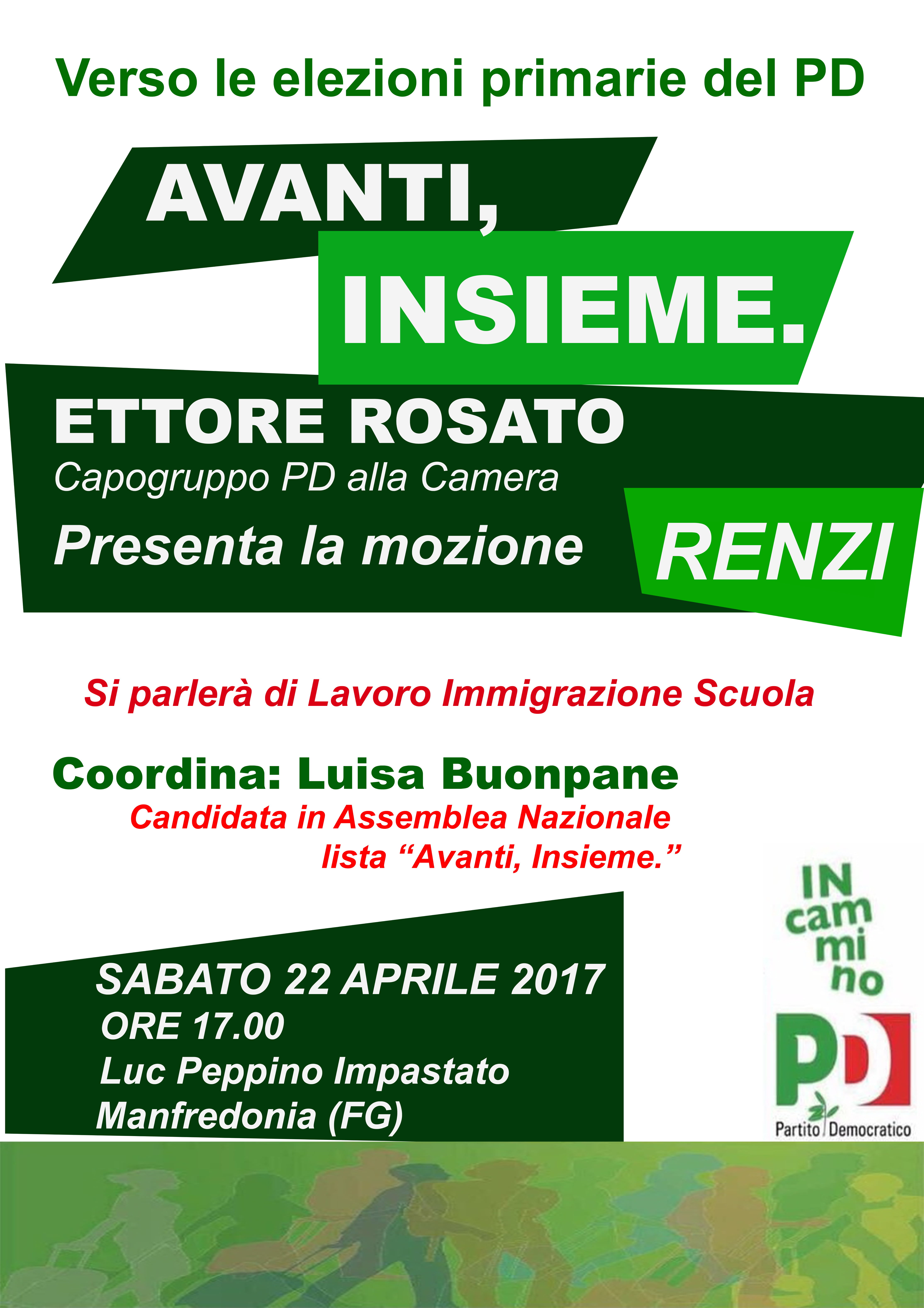L’invito è rivolto a tutti coloro che anche a Manfredonia intendono mettersi #InCammino, a chi crede che un Futuro migliore è possibile ed anzi è già iniziato. #AvantInsieme!