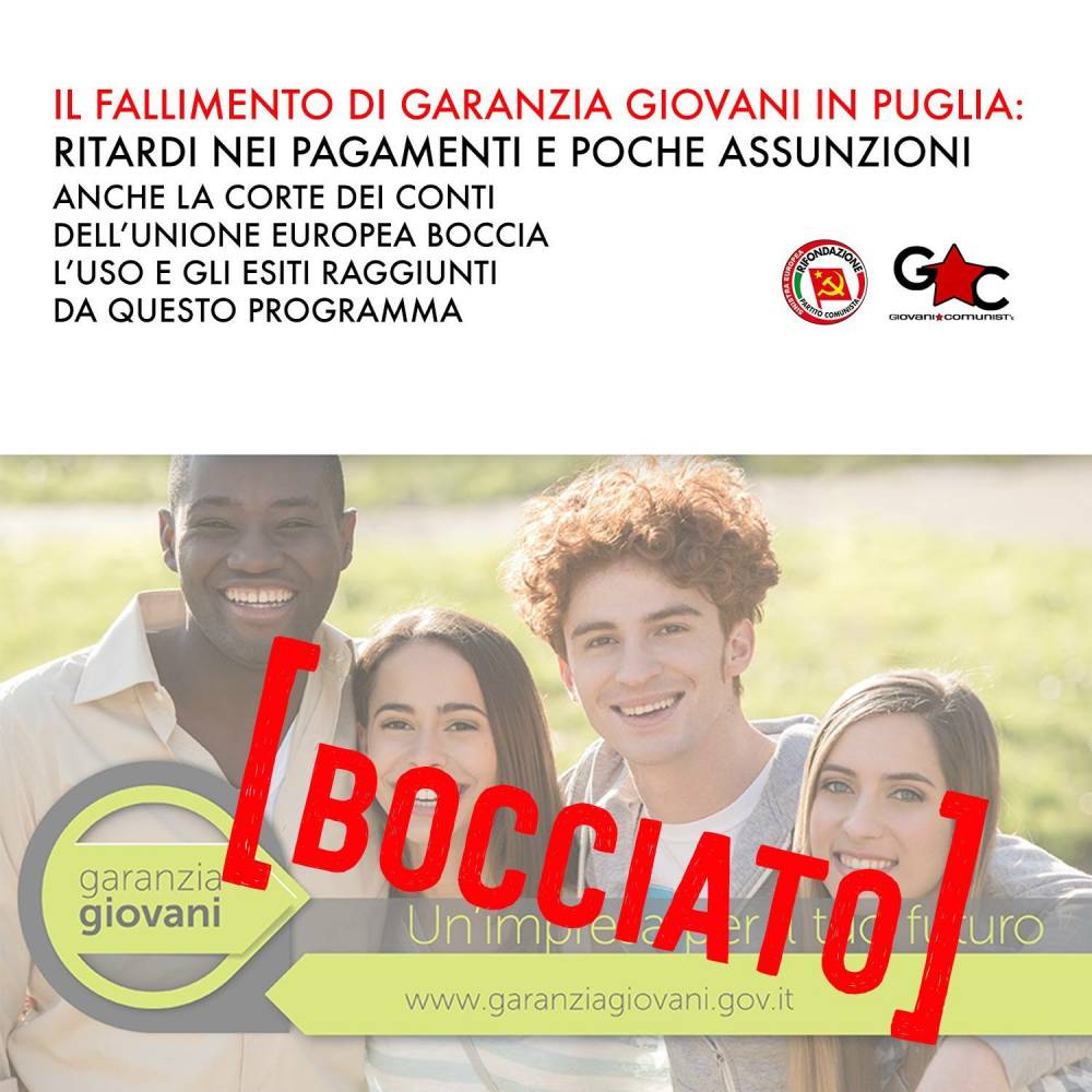 Ci sono migliaia di ragazzi pugliesi che lavorano (lo chiamano “tirocinio” ma è un lavoro effettivo) attraverso questo sistema malato, che prevede un iter burocratico abbastanza farraginoso per i pagamenti. Proprio per districarsi in questa giungla, i Giovani Comunisti di Taranto hanno redatto una Guida su Garanzia Giovani in cui si spiega dettagliatamente l’iter di iscrizione e di pagamento. I tirocinanti dovrebbero avere un bonifico ogni bimestre, ed invece se tutto va bene vengono pagati ogni 4 mesi. Se le Associazioni Temporanee di Scopo (ATS), che devono mediare fra Regione e imprese, commettono degli errori nell’invio della documentazione i tempi si dilatano ulteriormente; ci sono persone che terminano i 6 mesi del tirocinio senza aver visto nemmeno un euro.
