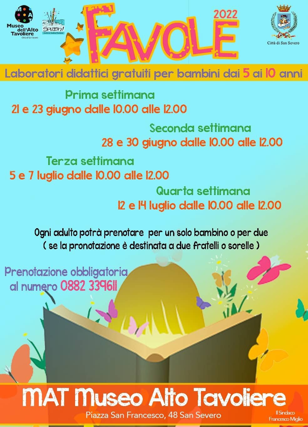 Le prenotazioni sono aperte da martedì 14 giugno. È possibile prenotare la partecipazione ai laboratori contattando esclusivamente il numero telefonico 0882.339611 (segreteria MAT), dal lunedì al venerdì, ore 9.00-13.30 e 17.30-20.30; il sabato, ore 18.00-21.00; domenica, ore 10.30-13.30 e 18.00- 21.00.