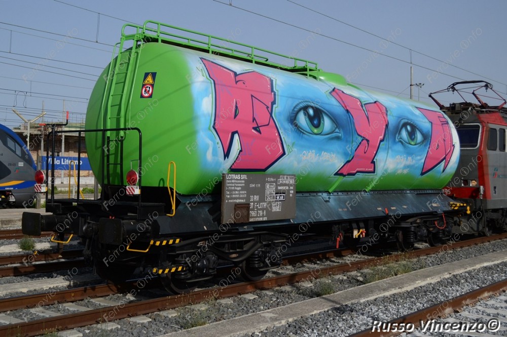 Con un’apposita normativa di RFI, il carro marcato 33 RIV 87 F-LOTR 7960 218-8 è stato quindi spinto a Pietrarsa San Giorgio a Cremano, si tratta di una cisterna a carrelli LOTRAS recante un particolare graffito realizzato da Domenico De Girolamo ed inoltrato all’interno del Museo Ferroviario in vista di una imminente manifestazione commemorativa.