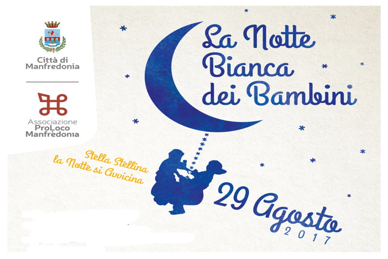 Dulcis in fundo, per le famiglie ed i più piccini, la “Notte Bianca dei bambini”, evento promosso dall’associazione turistica Pro Loco di Manfredonia. Il centro storico della città sarà invaso da trampolieri, giocolieri, modella palloncini, clown e artisti di strada che lo animeranno fin dalle ore 19. Punto di partenza della manifestazione sarà il Larghetto dei Celestini, dove i bambini inizieranno il proprio percorso truccati da veri supereroi, si proseguirà quindi con uno spettacolo di magia pura in Larghetto Stella e poi in Villa comunale dove i trampolieri ci stupiranno con la magia di gigantesche bolle di sapone. A seguire in Piazza del Popolo e in Piazzetta Mercato le famiglie potranno assistere a spettacoli circensi di clowneria, equilibrismo, mangiafuoco e sputafuoco che ravviveranno la serata e si ripeteranno più volte durante la kermesse, così come meglio indicato nel programma. Oltre a questi spettacoli, un corteo di artisti di strada itinerante si esibirà lungo Corso Manfredi, intrattenendo i più piccoli con le proprie famiglie e al termine presenterà in Piazza del Popolo il Grande Spettacolo Finale, per tenere tutti con il nasino all’insù.