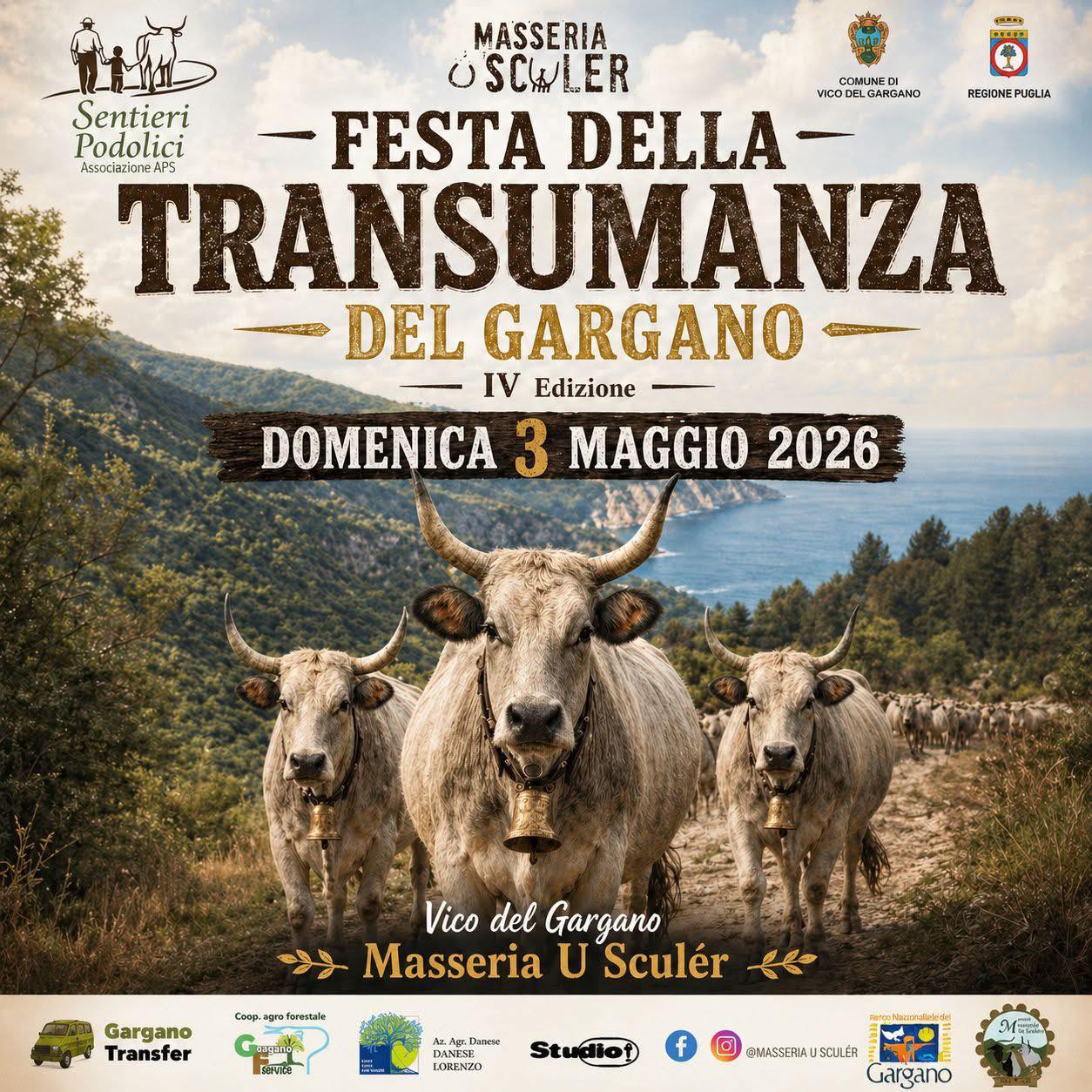 L’evento è organizzato dall’Associazione Sentieri Podolici in collaborazione con Masseria U Sculér, con il sostegno del Parco Nazionale del Gargano, della Regione Puglia e del Comune di Vico del Gargano.