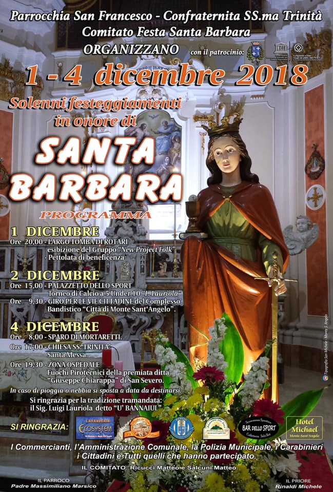Si ringraziano Parrocchia di San Francesco, Chiesa Ss. Ma Trinita, Lavanderia Ecosystem, Bar dello Sport , Armonie del Sole, Futsal Monte Sant’Angelo, Hotel Michael,Panificio San Michele, i cittadini, i commercianti e le forze dell’ordine.