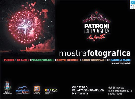 Ore 20.00 – Chiostro Palazzo San Domenico: Inaugurazione della mostra fotografica “Patroni di Puglia – la festa”, organizzata da Patroni di Puglia, Comune di Manfredonia, Agenzia del Turismo, Parco Nazionale del Gargano e Puglia Autentica.