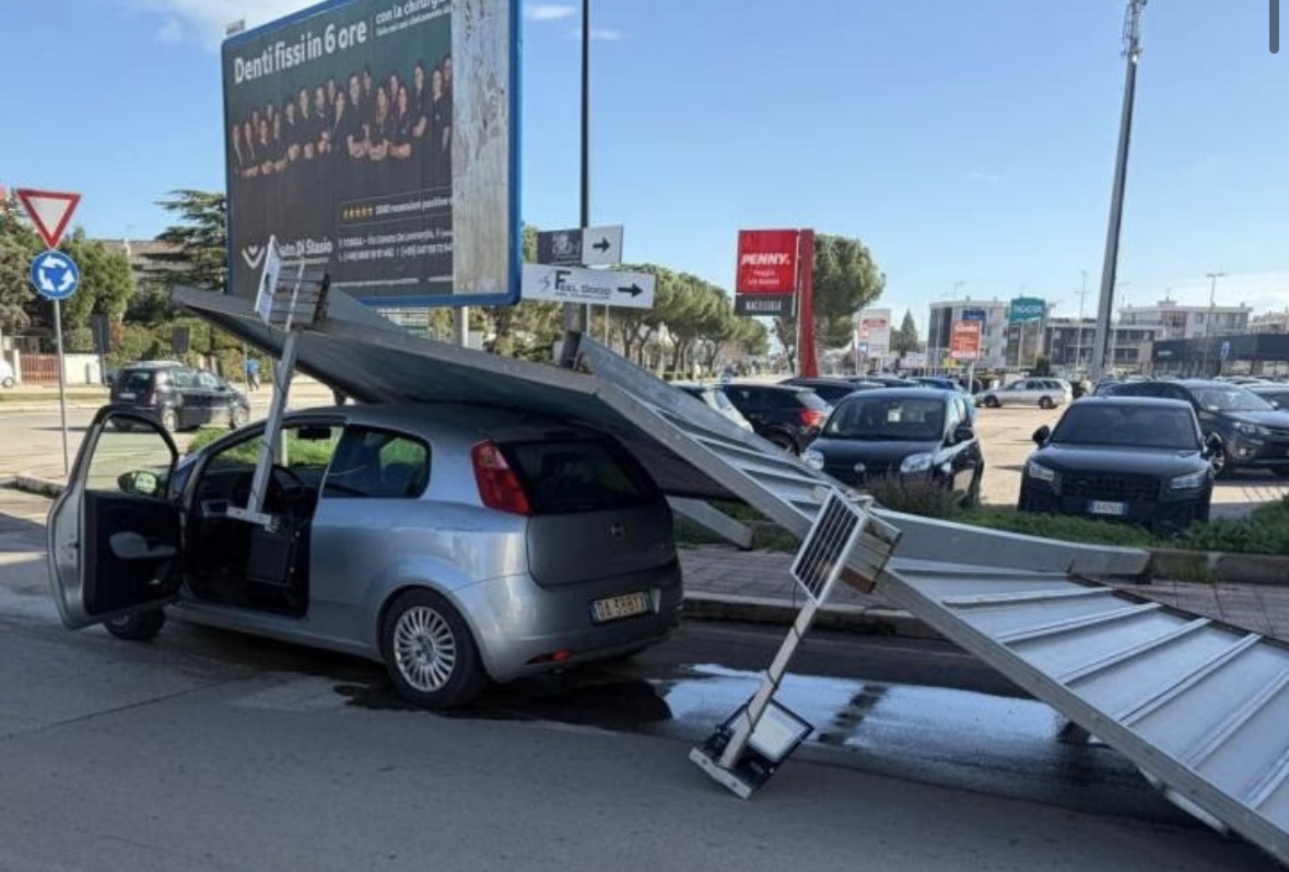 Foggia – Momenti di paura questa mattina a Foggia, dove un cartellone pubblicitario è precipitato a causa del forte vento che da ore soffia sul capoluogo dauno. L’episodio è avvenuto tra via Telesforo e via Camporeale, colpendo la parte posteriore di un’auto in transito.