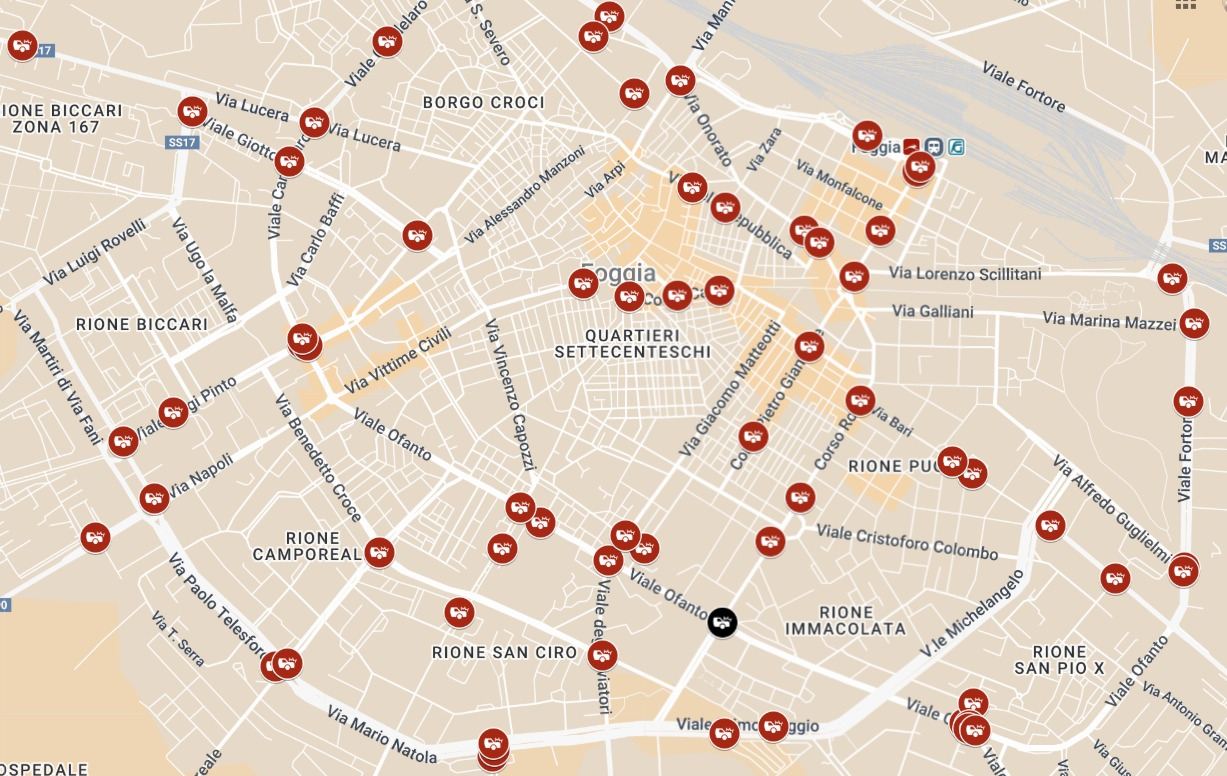 A Foggia si continua a morire, ferirsi o rischiare la vita per strada. Le due mappe che accompagnano questo articolo riportano circa 80 incidenti gravi avvenuti negli ultimi due anni nel solo perimetro urbano. Si tratta esclusivamente di quelli finiti sulle cronache locali, quelli più impattanti. Ma il dato reale è ancora più impressionante: secondo le medie registrate dalle autorità, a Foggia si verificano quotidianamente tra i 3 e i 4 incidenti, una cifra da allarme rosso per una città di circa 150.000 abitanti.