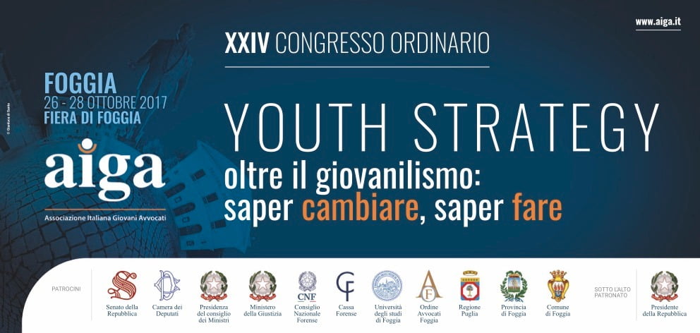 Sarà Foggia ad ospitare, dal 26 al 28 ottobre, la XXIV edizione del Congresso Nazionale dell’AIGA (Associazione Italiana Giovani Avvocati).