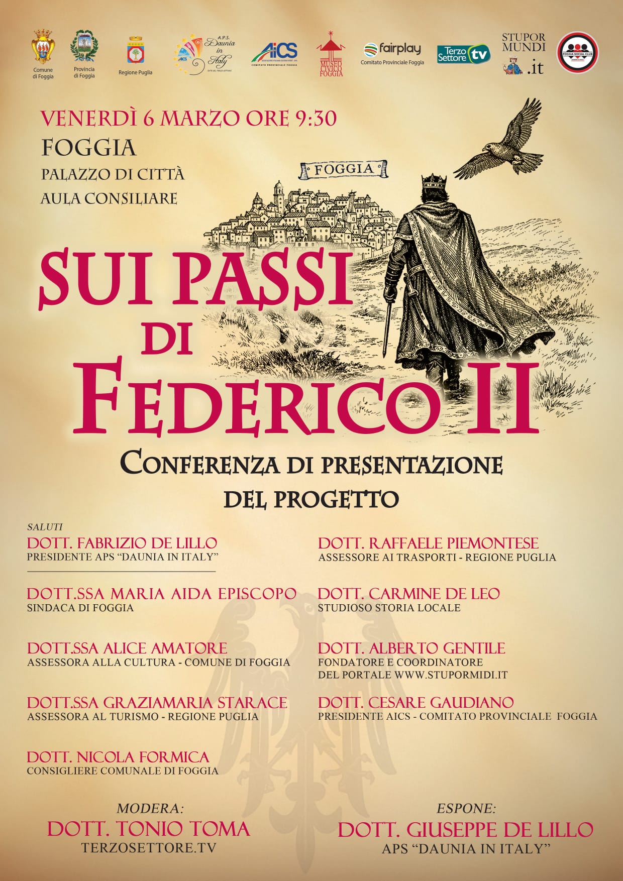Foggia torna a camminare sulle orme di Federico II di Svevia, l’imperatore che più di ogni altro ha lasciato un segno profondo nella storia della Capitanata. Venerdì 6 marzo alle ore 9.30, nella Sala del Consiglio Comunale del Palazzo di Città di Foggia, sarà presentato il progetto culturale “Sui passi di Federico II”, un’iniziativa che unisce memoria storica e tecnologie digitali per valorizzare il patrimonio del territorio.