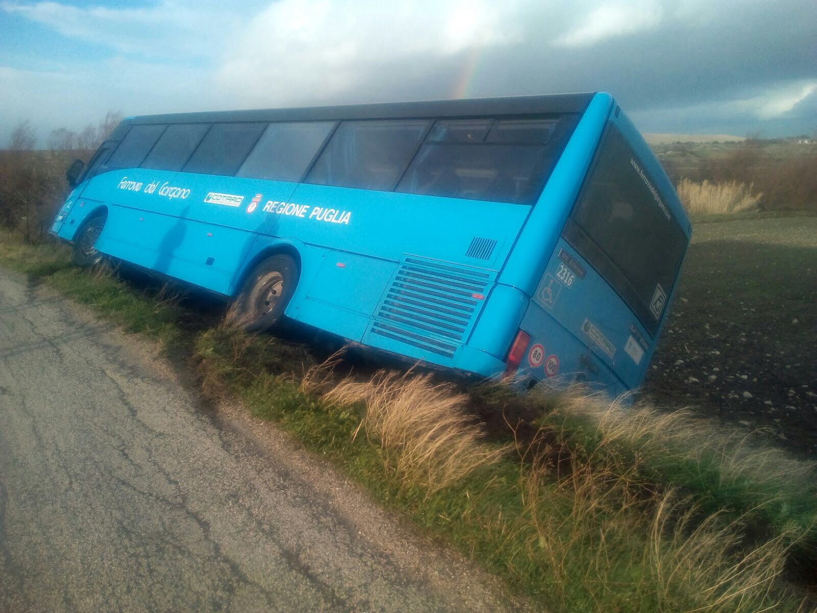 Forti raffiche di vento, fuori strada pullman delle Ferrovie del Gargano