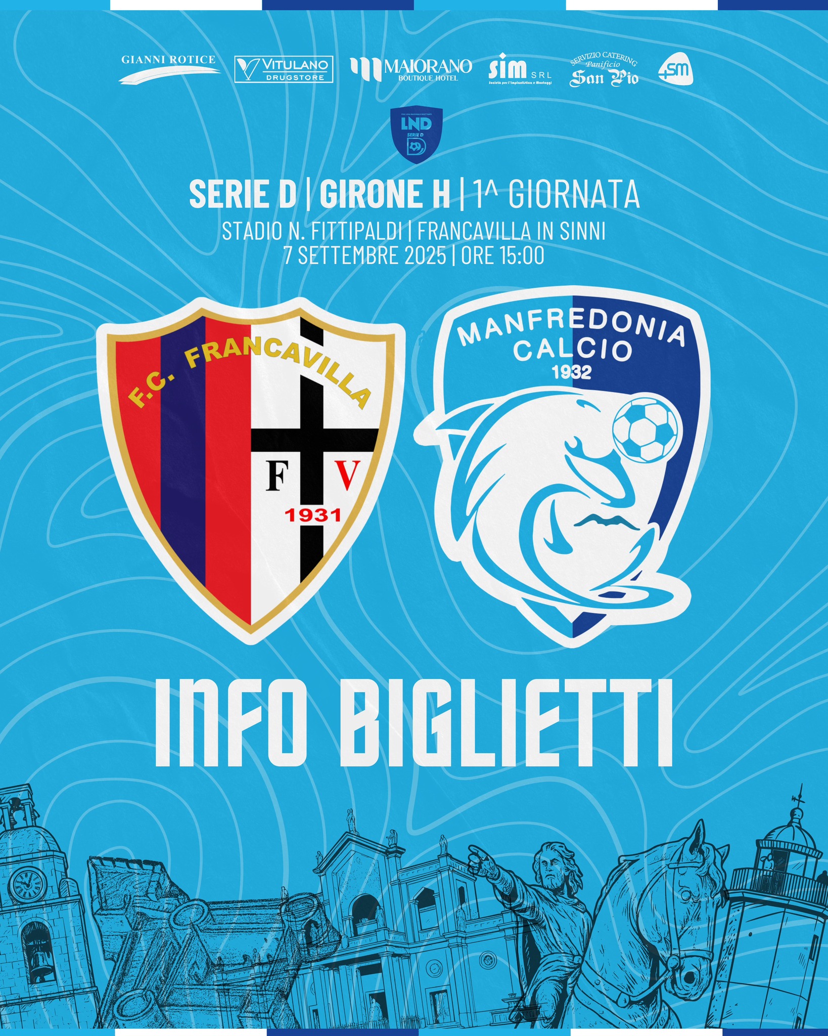 Il Francavilla FC rende note le modalità d’acquisto dei tagliandi del Settore Ospiti dello stadio “N. Fittipaldi” di Francavilla in Sinni, per assistere al match Francavilla-Manfredonia, valido per la 1^ giornata del campionato di serie D – girone H 2025-2026.