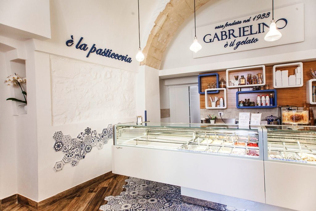Gabrielino è stato il primo a differenziarsi creando gusti unici e difficilmente replicabili, proponendo tra gli altri il gusto che porta il suo nome, Gabrielino, appunto: una crema con i migliori agrumi del Gargano, con pasta frolla sbriciolata e pezzettini di mandorle baresi, o anche il sorbetto di gelso rosso, Olivio all’olio extravergine d’oliva e il pistacchiofatto con i soli frutti di Bronte.
