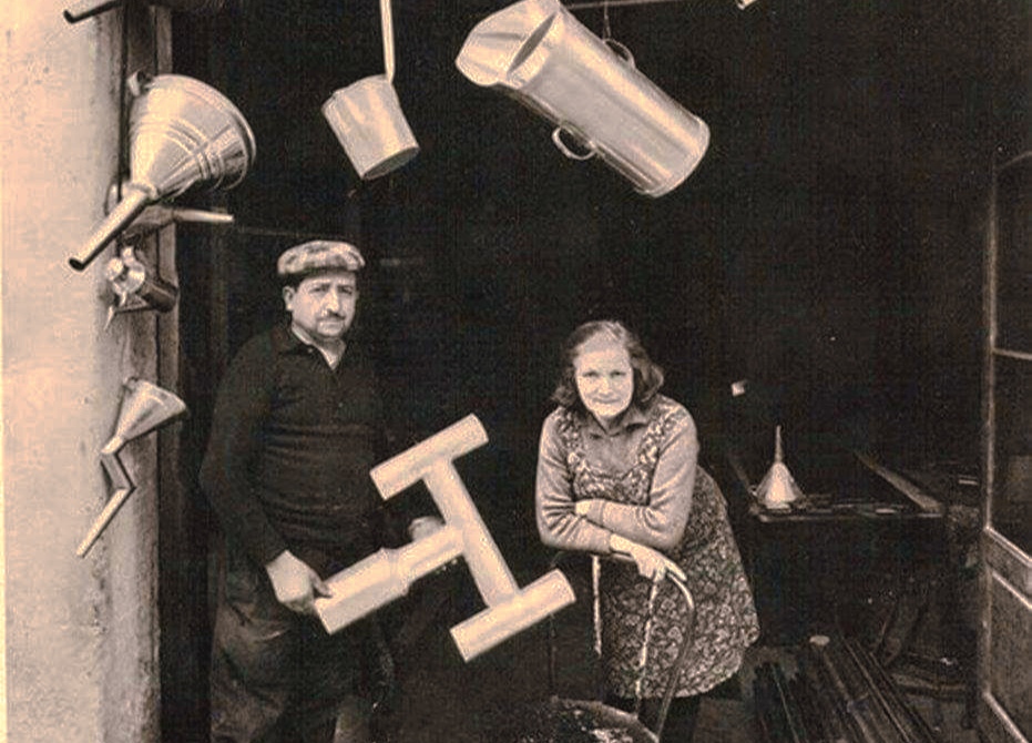 Michele e Giovanna, avevano un’attività in Via Seminario; Michele ,era un vero artista ,con la bottega piena di opere da lui realizzate. Ricordo che ne vendeva molte ai forestieri, specie in estate, di quelle estati manfredoniane dell’anima profumata di onde marine, che ti davano riposo di quiete. Loro erano sempre dediti al lavoro e al silenzio ,di una vita comune ,educata e semplice… oserei dire ordinata alla quotidianità – anche di domenica era aperto,lui , Michele – era un pò scuro di fuliggine in volto e sugli abiti e lavorava tra quei rumori tra l’incudine e il martello, tra lo stagno e il metallo.Mentre Giovanna, collaborava a tutte le sue opere, ma non si risparmiava a realizzare anche oggetti di uso giornaliero, che la gente comprava negli autunni profumati di olio, di mare e cielo sipontino, li tengo ancora impressi oggi nel mio sguardo, rivolto in quel luogo . Che oggi mi manca tanto.