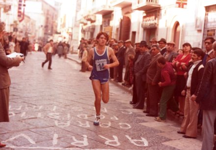 Eccolo l’immagine, è chiara, il ragazzo passa, attraversa il duro avvallamento lastrico, in faccia alla moda di quegli anni, alle sue spalle a pochi metri al centro del percorso segue la gara, un ‘esile figura, ero io. Una lunga avventura la sua, nata nello stesso periodo alla mia, poi divisa solo dal tempo che ci svincolò le stradi. Quell’anima dal sacrificio, dallo sguardo volto al futuro, è rimasto,è nato per correre nella sua Manfredonia al tempo di quando si gareggiava sui percorsi della nostra Puglia.