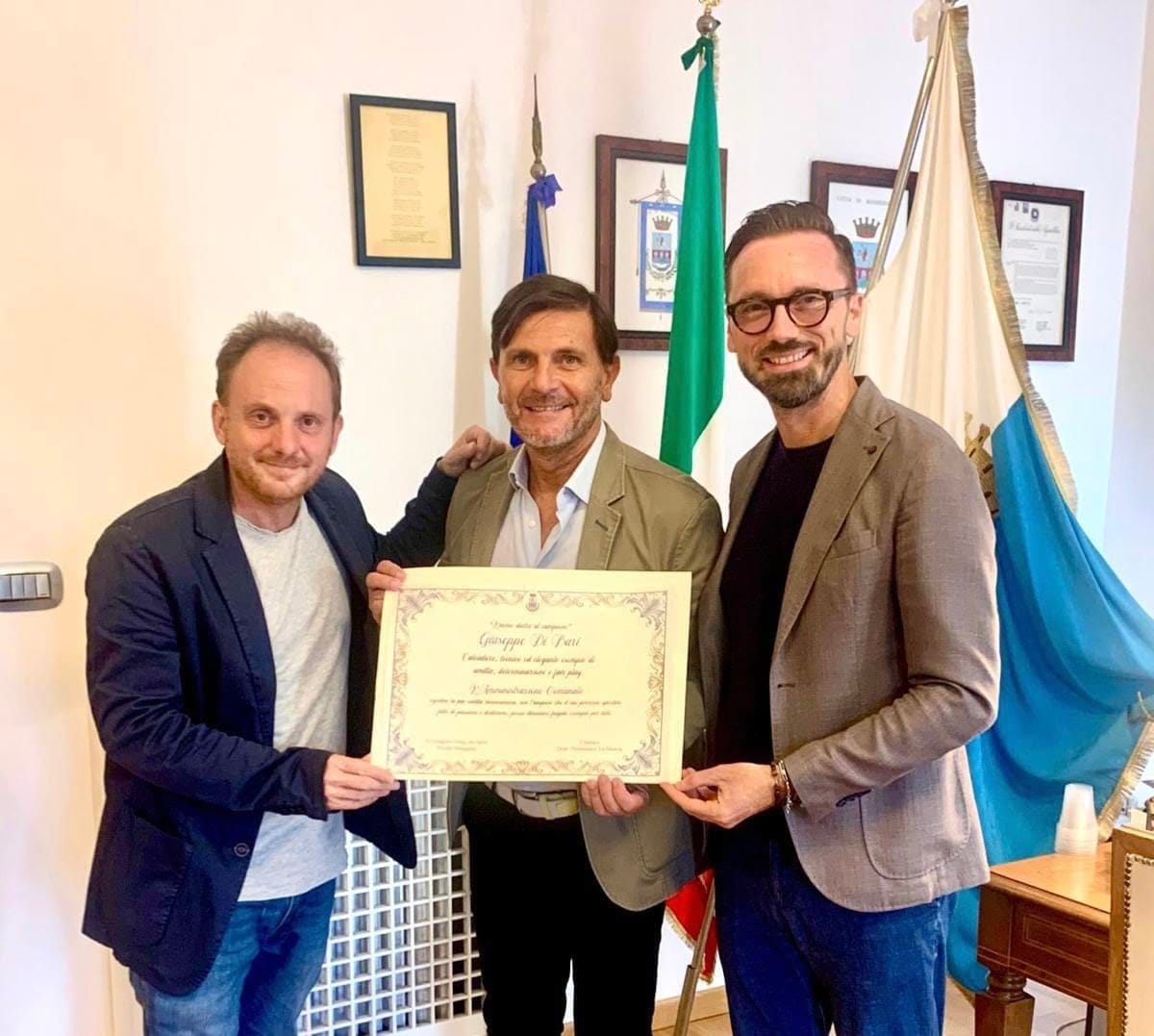 Questo pomeriggio, il sindaco Domenico la Marca e il Consigliere con Delega allo Sport hanno conferito un riconoscimento a Giuseppe Di Bari, esempio straordinario dello spirito sportivo della nostra città. La sua carriera, segnata da passione e dedizione, rappresenta un modello per tutti i giovani che si avvicinano allo sport.