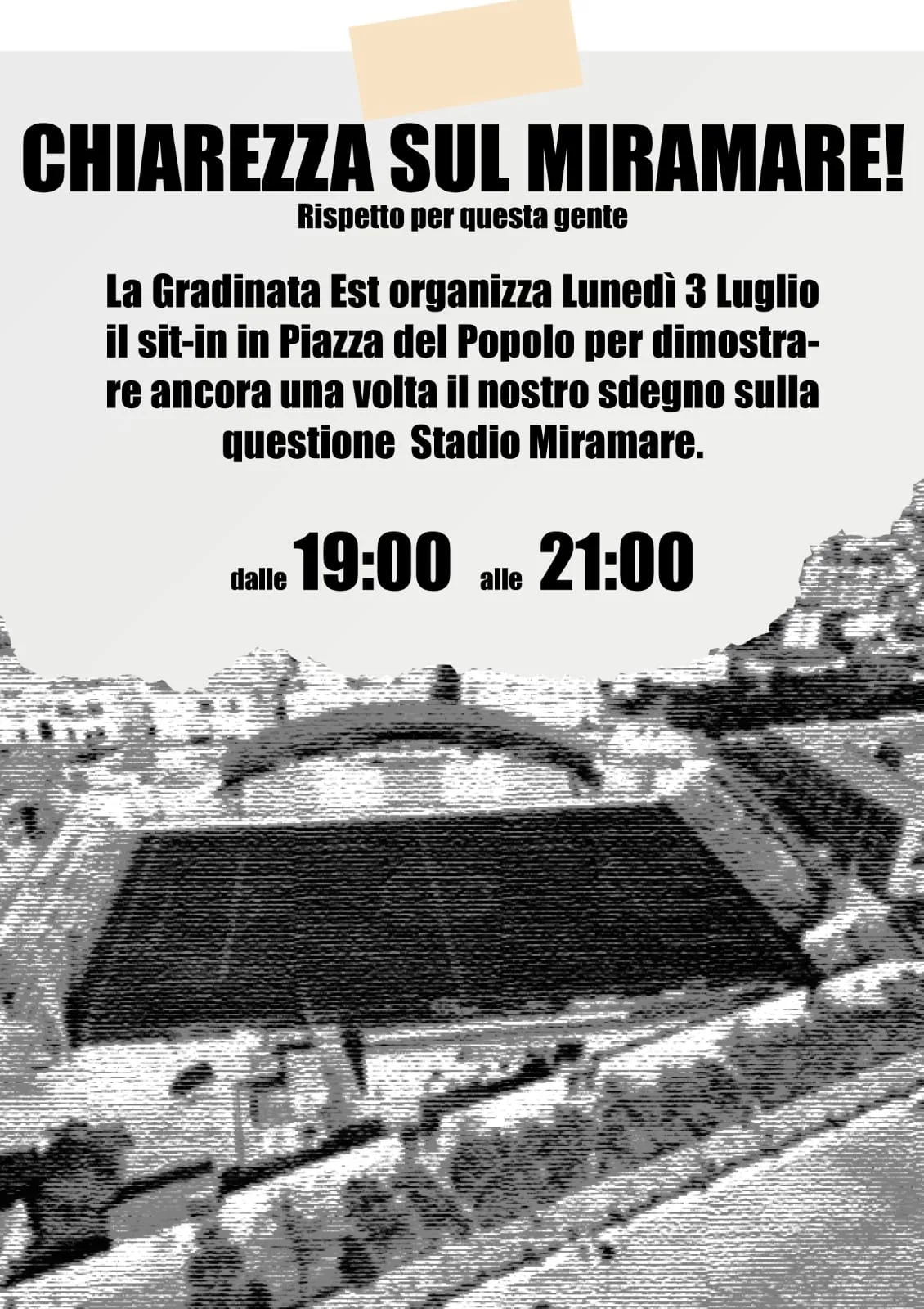 Lunedì 3 Luglio dalle ore 19:00 alle ore 21:00 la Gradinata Est invita tutta la città di Manfredonia ad essere presente in Piazza del Popolo per il sit-in per dimostrare ancora una volta il nostro sdegno sulla questione “Stadio Miramare”.