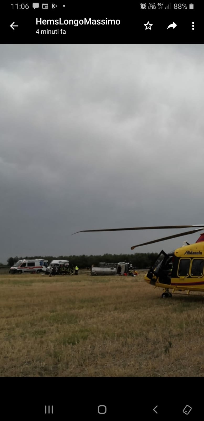 Due i feriti gravi (uno dei due intubato e portato in elicottero) trasportati in Ospedale.