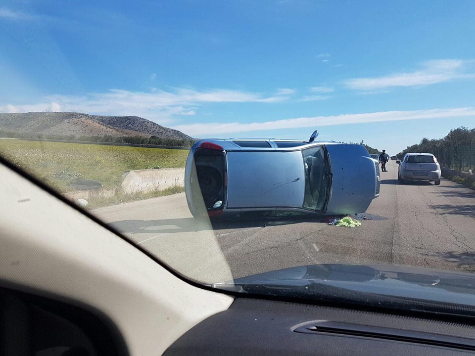 Una Fiat Multipla si è capovolta sull’asfalto per cause ancora da chiarire.
