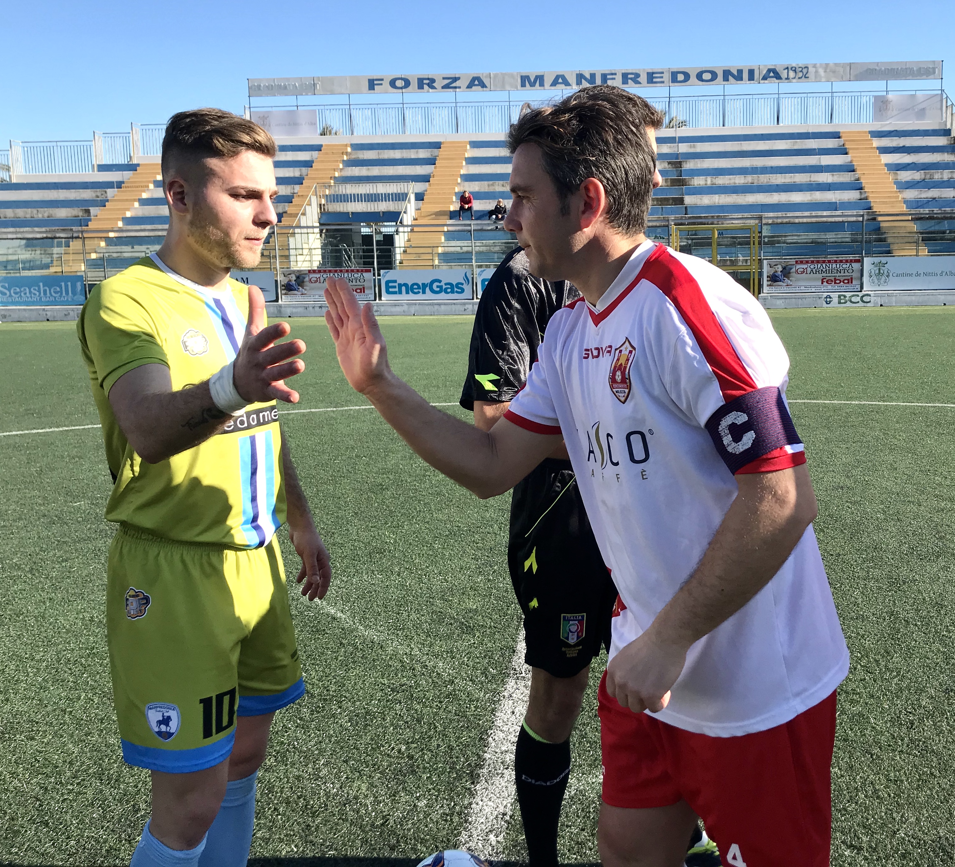 MANFREDONIA FOOTBALL CLUB: Ciuffreda, Sciannandrone, Lorito; Spadaccino (27’st Accarrino), Lauriola Ma., Paglione; Lomuscio (8’st Malavisi), De Filippo, Trotta, Simone (15’st Castigliego), Lauriola (34’st Spagnuolo). A disp. Valente, Vitulano, Paglione G., Palumbo, Trimigno. All. Luigi Renis