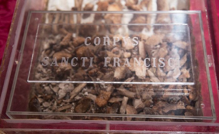 Nel 1818 sotto il generalato di Giuseppe Maria de Bonis ripresero gli scavi segreti. “Dopo un primo tentativo andato fallito – riferisce Accrocca – si riprese a scavare nella direzione avviata nel 1806 da Papini e finalmente – per l’appunto il 12 dicembre – i resti del santo vennero rinvenuti. Ed erano veramente i suoi, anche se la scienza del tempo non poté́ allora documentarlo in modo incontrovertibile, come si potrà fare invece più tardi: non un corpo incorrotto e in piedi, ma semplici ossa di una persona che aveva sofferto e che, proprio a motivo di ciò, avrebbe potuto costituire per altri come lui un più̀ reale termine di riferimento. L’icona, in definitiva, di un uomo in carne e ossa fatto oramai di materia. La storia di Francesco, una storia di cuore e cervello per un mondo malato…che spera in un sogno di un canto serafico e di cure per salvarlo.