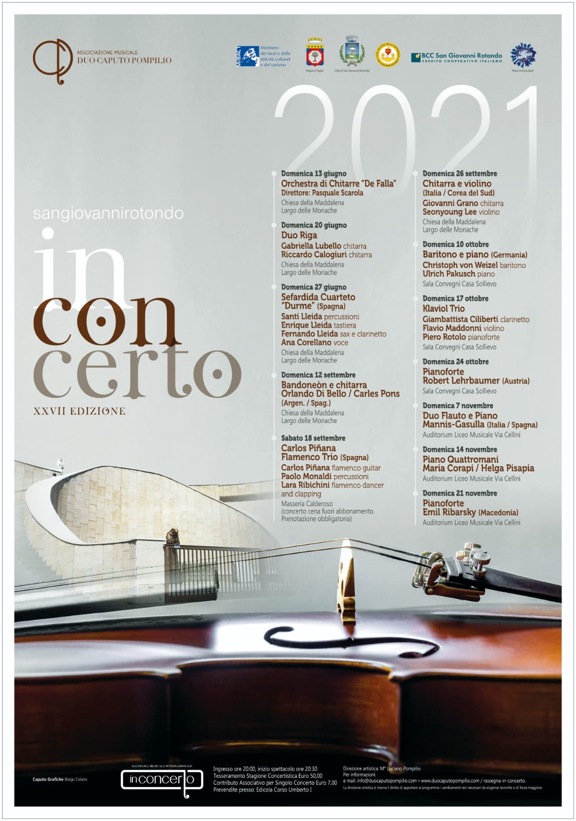 Dopo ben quindici mesi di assenza domenica 13 giugno dalla suggestiva sala della Chiesa della Maddalena di San Giovanni Rotondo torna in scena la XXVII edizione della Rassegna Musicale Internazionale In Concerto, ideata e curata dal Maestro Luciano Pompilio.