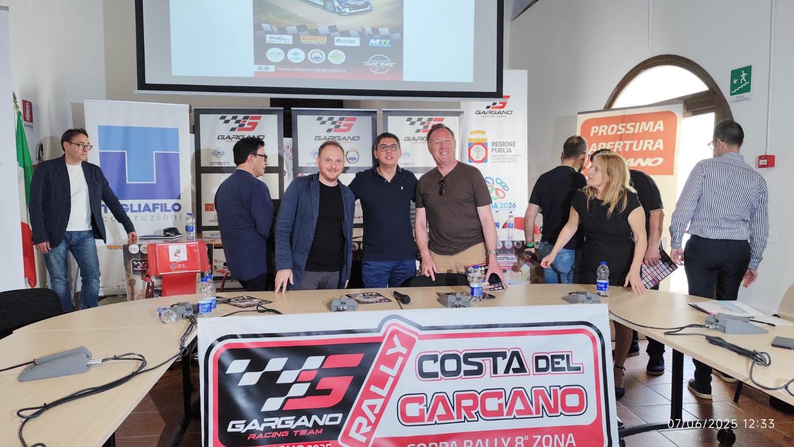 Monte Sant’Angelo (FG) – In un partecipato incontro nella biblioteca delle Clarisse a Monte Sant’Angelo (FG), è’ stata presentata questa mattina la quarta edizione del Rally Costa del Gargano, gara valida per la Coppa Italia ACI SPORT di zona 8, in programma il 14 e 15 giugno prossimi con partenza e arrivo presso il porto turistico di Manfredonia. L’evento è organizzato da Gargano e Tecno Motor Racing Team, con i patrocini di Regione Puglia, European Region of Sport 2026, rappresentato oggi in conferenza stampa dal vice presidente e assessore allo sport Raffaele Piemontese, di CONI Dipartimento Sport e Salute, ACI e Provincia di Foggia, del Parco del Gargano e dei Comuni di Monte Sant’Angelo, Manfredonia e Mattinata con la presenza di tutti e tre i sindaci.