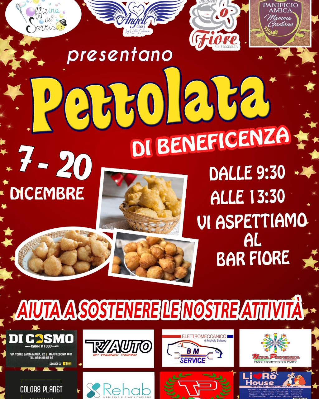 L’Associazione Angeli2021 in collaborazione con Bar Fiore Bar Fiore F.lli Bisceglia, Panificio mamma_gaetana e L’Officina del Sorriso Officina del Sorriso PRESENTANO: