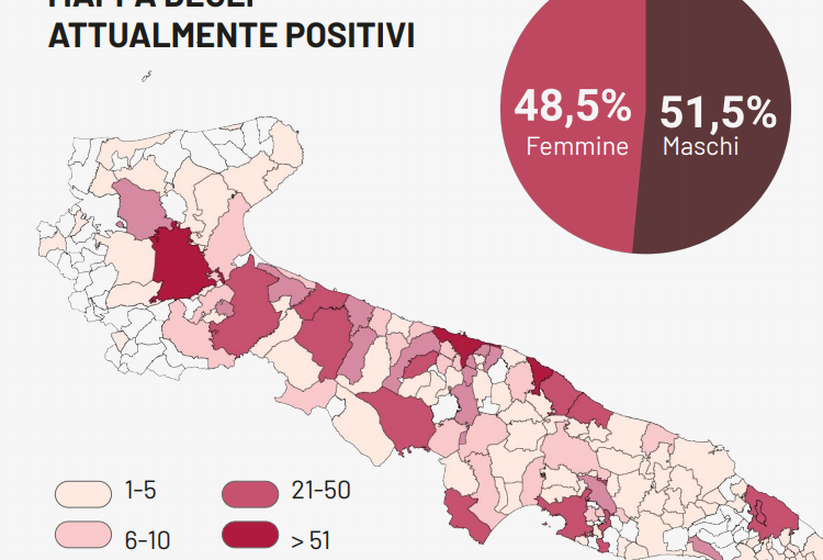 Il totale dei casi positivi Covid in Puglia è di 6.291, così suddivisi: