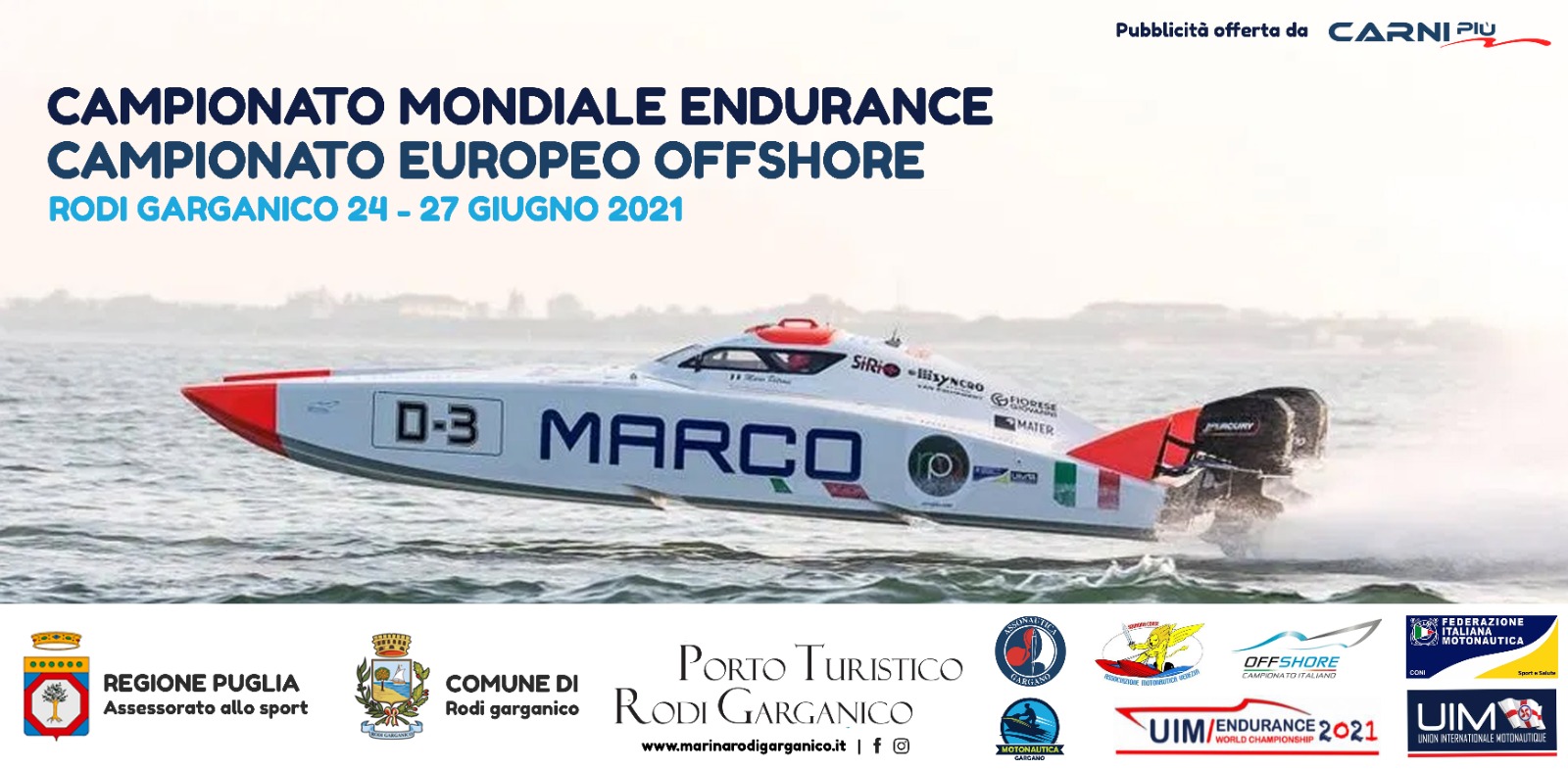 Dal 24 al 27 Giugno nella splendida location di Rodi Garganico preso il Porto Turistico, tra l’azzurro del mare e il verde smeraldo degli agrumeti e degli ulivi, si alzerà il sipario del Campionato Mondiale di Endurance 2021 ed Europeo di Offshore. Un mondo attraente, fatto di adrenalina, potenza, eleganza e mondanità. Una 4 giorni di gare tra imbarcazioni ad alta velocità all’insegna dello sport motoristico di eccellenza del mare.