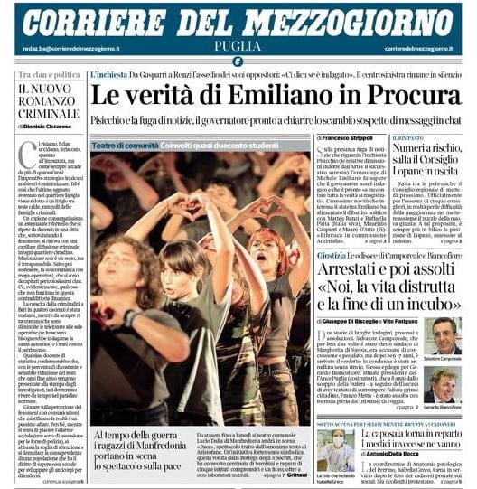 In attesa del debutto di “Pace – da Aristofane”, la nuova produzione di comunità di Bottega degli Apocrifi in scena da questa sera a lunedì 22 aprile, il Corriere del Mezzogiorno ha dedicato un’ampia pagina alla realtà teatrale pugliese. Con un pezzo a firma dello scrittore Davide Grittani, il dorso regionale del Corriere della Sera si occupa di questa produzione che vedrà in scena ben 180 attori, musicisti, bambini e adolescenti, già segnalata un mese fa sulle pagine nazionali del Corriere nell’inserto “Buone notizie”.
