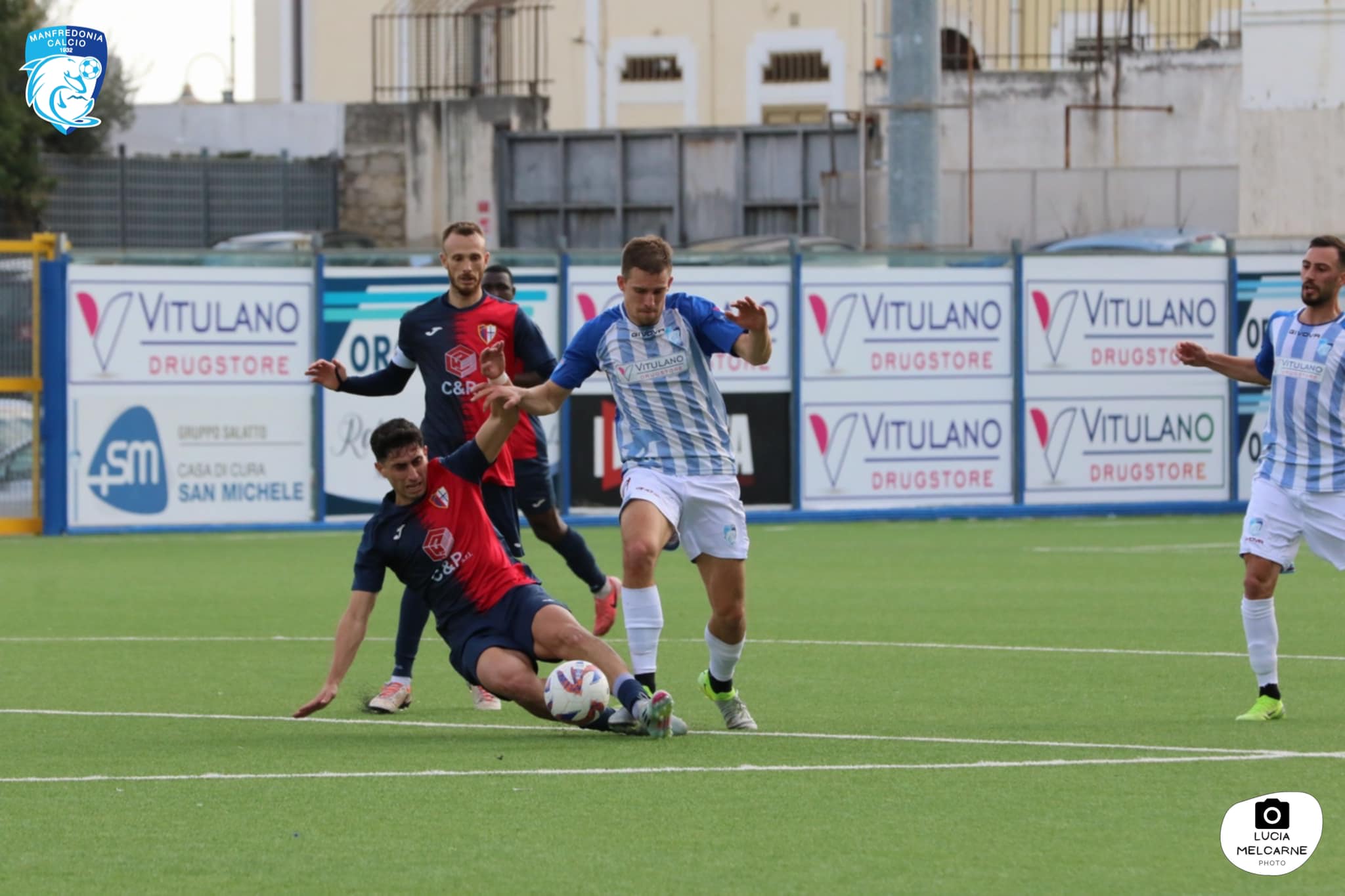 Manfredonia assolutamente non pervenuto nella prima frazione di gioco e sino al goal segnato da Carbonaro al 21′ del st. Aritmeticamente, sono stati giocati, compresi i 3 di recupero del primo tempo, circa 65 minuti di nulla calcistico, con i giocatori incapaci di impensierire l’estremo difensore ospite con un decente tiro in porta.