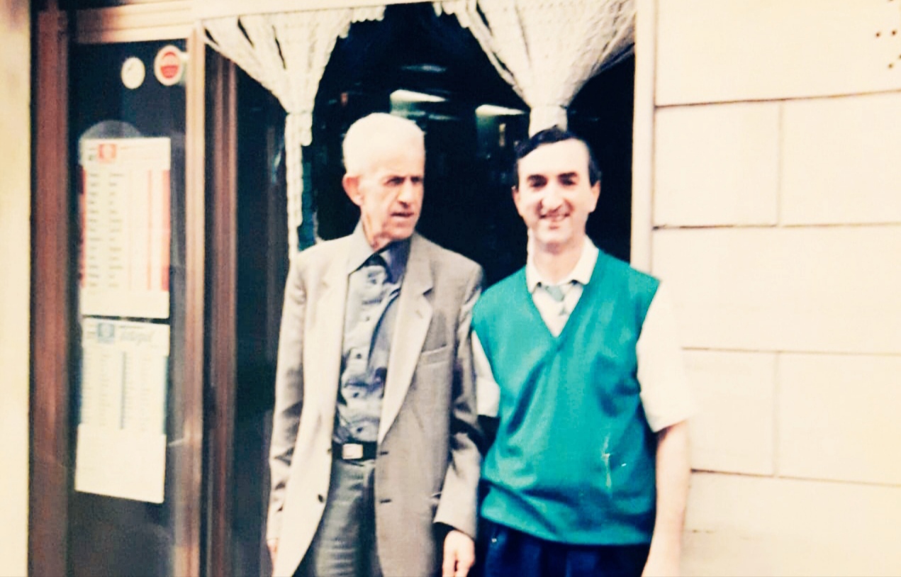 Manfredonia – UNA rara foto che ritrae due grandi personaggi del paese – Tonino Pollicino, insieme al maestro Pinuccio “U Cinume Priatorjie”…Tonino è stato l’ anima di un paese, che ha visto passare tanti eventi – buoni e cattivi . Ricordo anni fa , lui, storico del mestiere di barista … Quando esistevano certe radio d’ avanguardia e di una grande novità .I famosi Forbicioni, molto amici di Tonino…parlavano spesso di lui nei programmi, mentre io vivevo in Toscana.Oggi, ho saputo della triste notizia di Antonio, col suo passo leggero e fisico magro…tornare in un nuovo mondo ,con le sue battute inconsuete e di vita popolare in una risata a tempo.