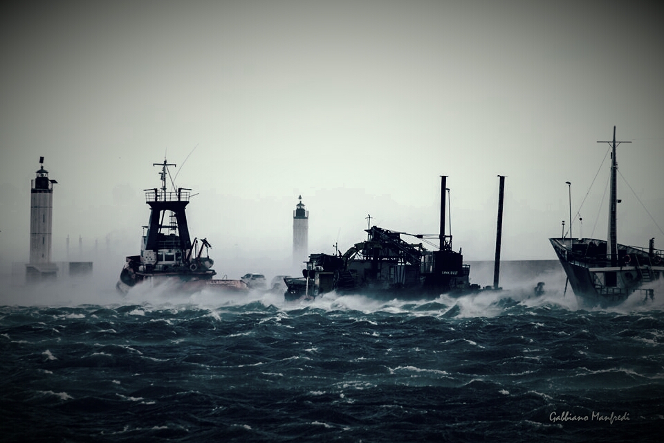 A sorsi scendeva giù nei polmoni un bicchiere di umidità senza fondo! Il castello sembrava contenesse il maltempo, la casa del molo un punto di spicco! Dalle vetrate dei suoi finestroni si intravedevano, muri ombrosi di vissuto, voci lasciate negli atri, un finestrino chiuso. Un marinaio pregava a un crocifisso di bordo; pauroso e con poca croce il sentimento di altri due  di cabina – che tremavano. Anziane, sparse sul lungomare; con la coroncina del rosario con l’immagine di Sant’Andrea – in una mano di fatica e sacrificio! Il vecchio cipresso toccava con la punto un pezzo di rigo nero, che sbucava nella nebbia alta dal fumo di tempesta .
