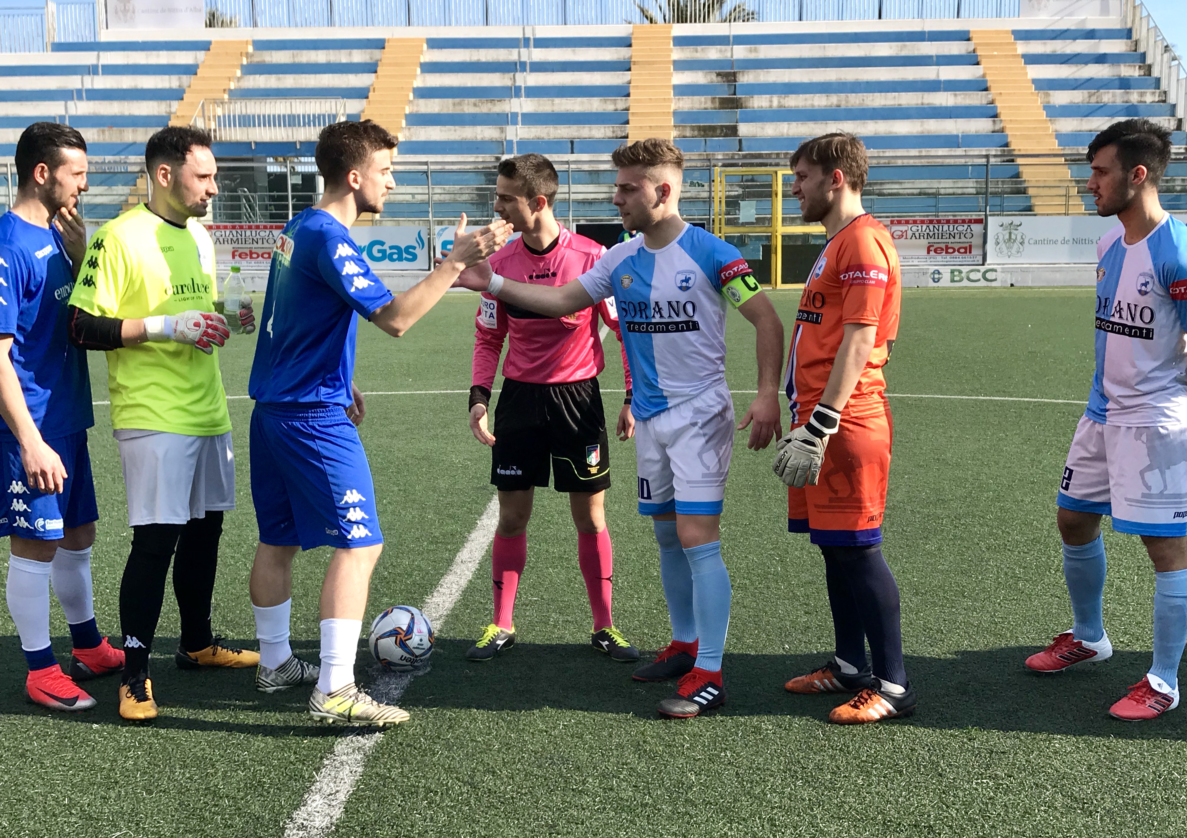 MANFREDONIA FOOTBALL CLUB: Valente, Sciannandrone, Lauriola Ma.; Castigliego (10’st Spagnuolo), Sanè, Paglione R.; Lauriola Mi., De Filippo (29’st Palumbo), Trotta, Simone, Malavisi (12’st Lomuscio). A disp. Ciuffreda, Lorito, Paglione G., Potenza. All. Luigi Renis