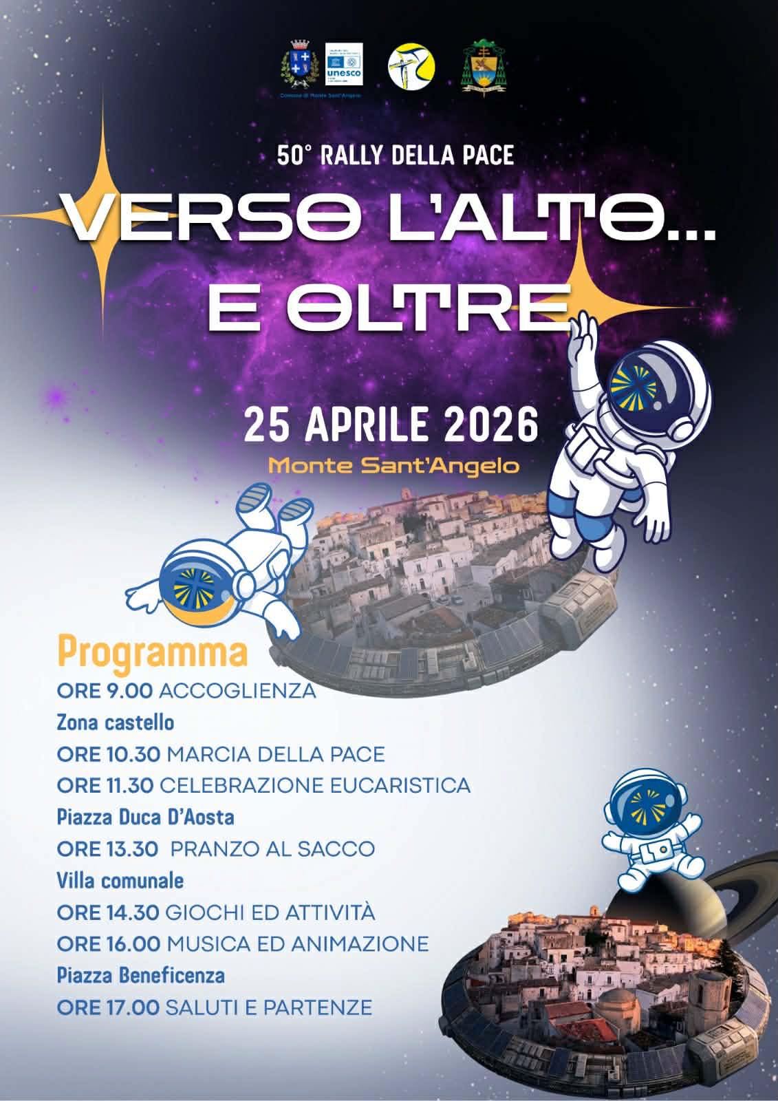 “VERSO L’ALTO… E OLTRE”, SABATO 25 APRILE IL 50^ RALLY DELLA PACE A MONTE SANT’ANGELO ✨