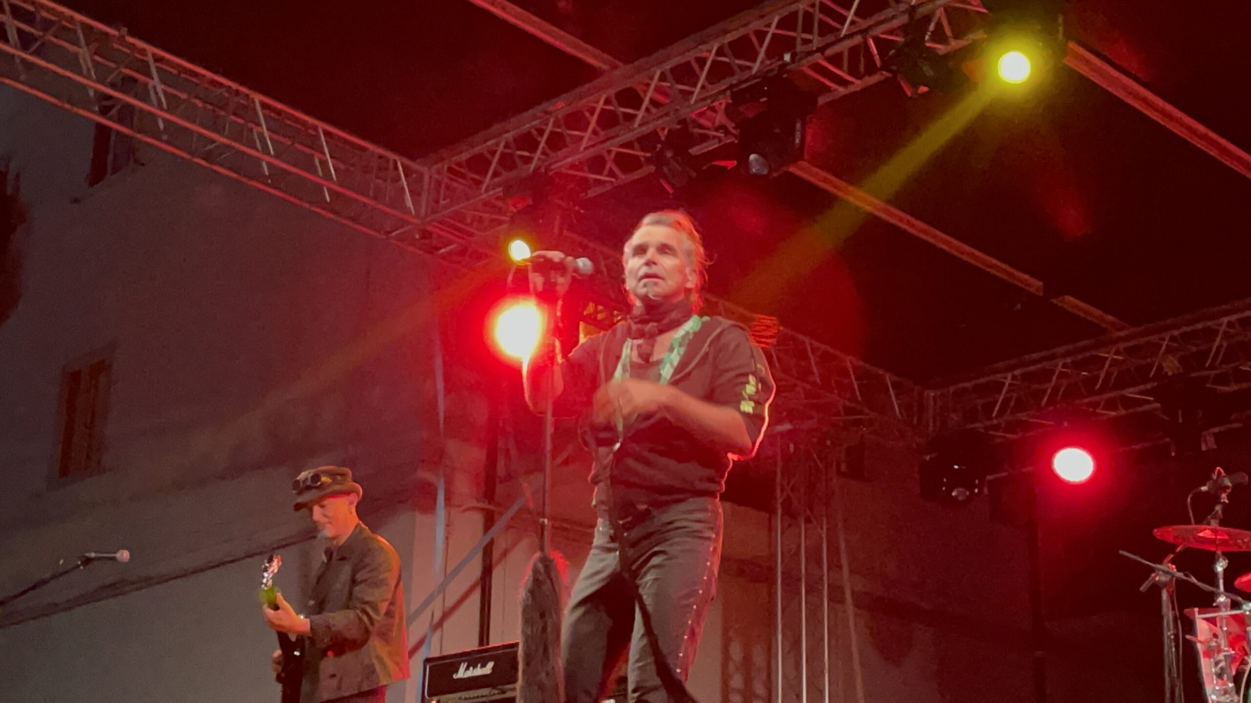 Il fondatore dei Litfiba alterna musiche trascinanti ad importanti messaggi sociali, ricordando Gino Strada e Raffaelle Carrà, la vera “regina di cuori”.