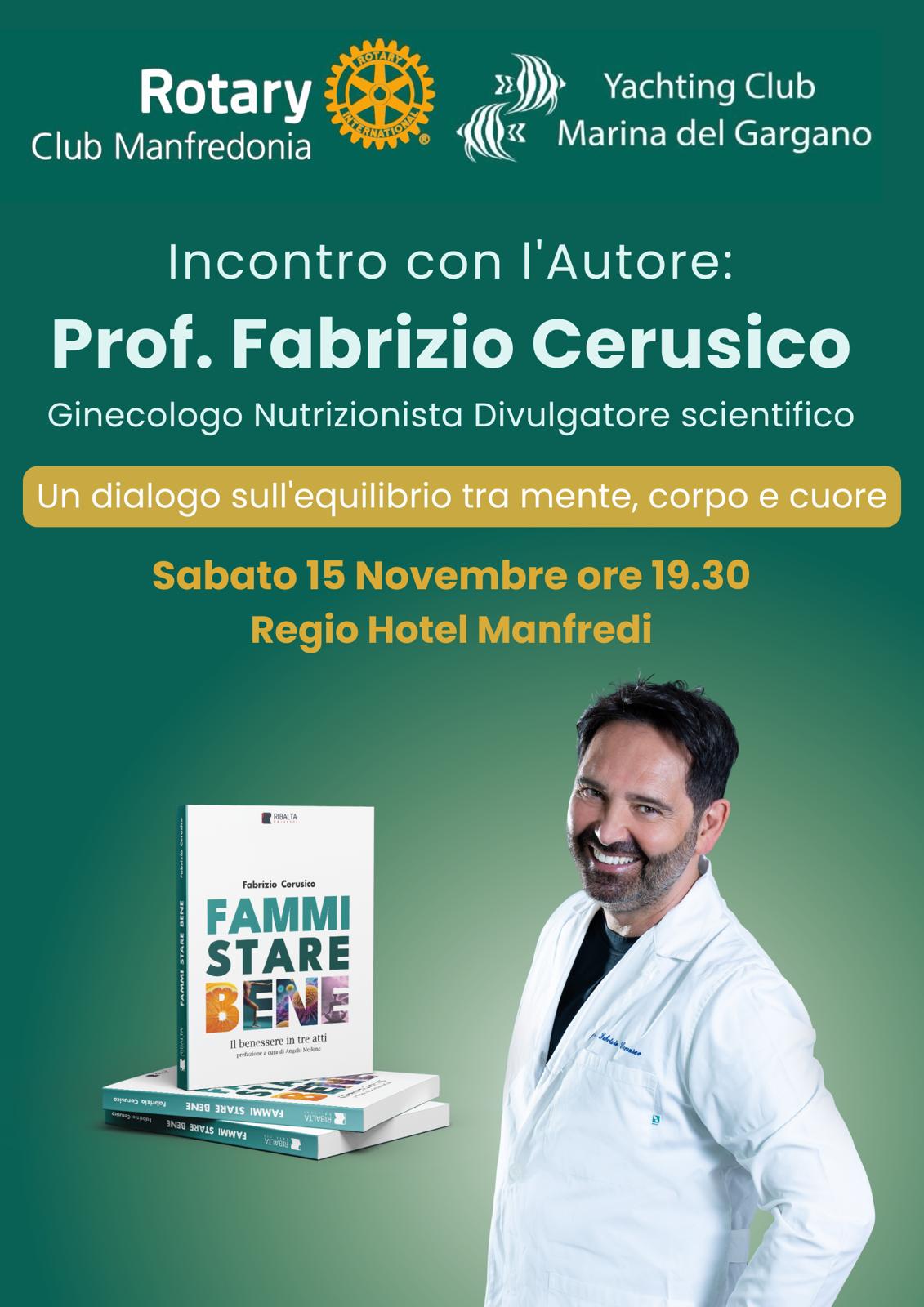 Il Rotary Club Manfredonia, in collaborazione con lo Yocthing Club, organizza sabato sera alle ore 19.30 presso il Regio Hotel di Manfredonia un incontro con il medico ginecologo e divulgatore Fabrizio Cerusicoper la presentazione del suo libro “Fammi stare bene. Il benessere in tre atti”.