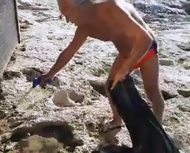 Nel video girato su facebook da Henri Sabino di Martino si vede Gianni Migneco un volenteroso signore di Manfredonia che ogni mattina ripulisce una zona scogliera (Acqua di Cristo – Isola che non c’è) per renderla fruibile.