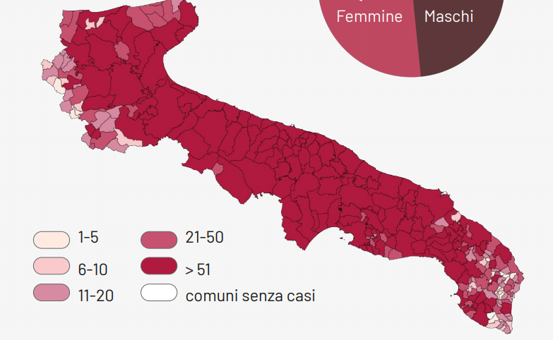 Il totale dei casi positivi Covid in Puglia è di 73.628, così suddivisi: