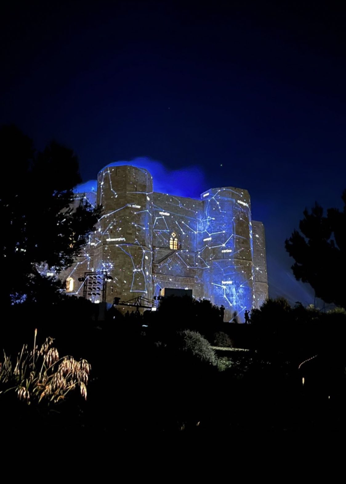 Lo show, con una sapiente e misurata regia, è stato un momento di mistero e fascino fra arte, bellezza e moda. L’appuntamento, attesissimo da giorni, è stato seguito in diretta sui social della maison da tantissimi appassionati e curiosi. A Castel del Monte, invece, hanno partecipato molte star internazionali: dai Maneskin, freschi di Eurovision Song Contest – che ieri hanno cenato a Trani nella cornice di esclusiva di Villa Ascosa, alle attrici Dakota Johnson e Elle Fanning fino alla cantante Lana Del Rey, l’attore Alessandro Borghi, la cantante Emma e la blogger Anna Dello Russo. Ad ogni ospite, considerando il giorno (scelto per la sua luna piena), Gucci ha promesso che adotterà e registrerà una stella per ogni ospite.