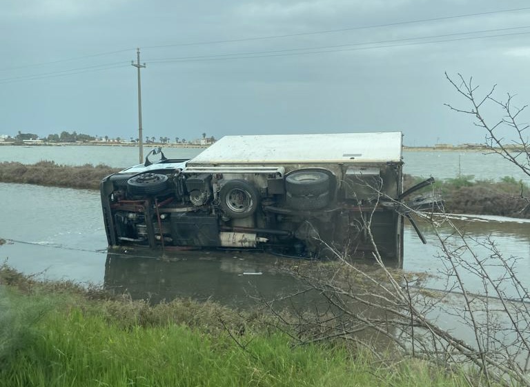 Nel pomeriggio sulla SP141, tra Manfredonia e Zapponeta un camion si è ribaltato ed ha finito la propria corsa ai lati della carreggiata, ribaltandosi su un lato.