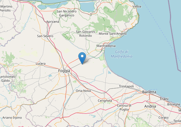 Il terremoto è stato localizzato14 Km a E di Foggia (151991 abitanti)23 Km a SW di Manfredonia (57279 abitanti)31 Km a NW di Cerignola (58396 abitanti)