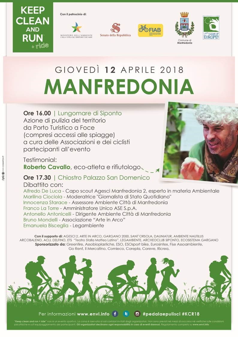 Arriva a Manfredonia, giovedì 12 aprile prossimo, la quarta edizione di ‘Keep Clean and Run’ (Pulisci e Corri, NdR) che, quest’anno, muta in ‘Keep Clean and Ride’, visto che si è scelto di utilizzare la bicicletta: “un mezzo che consente di fare più chilometri, di incontrare più persone, a impatto zero, e di coinvolgere tutti coloro che in Italia vanno in bici anche solo per spostarsi in modo sostenibile”.