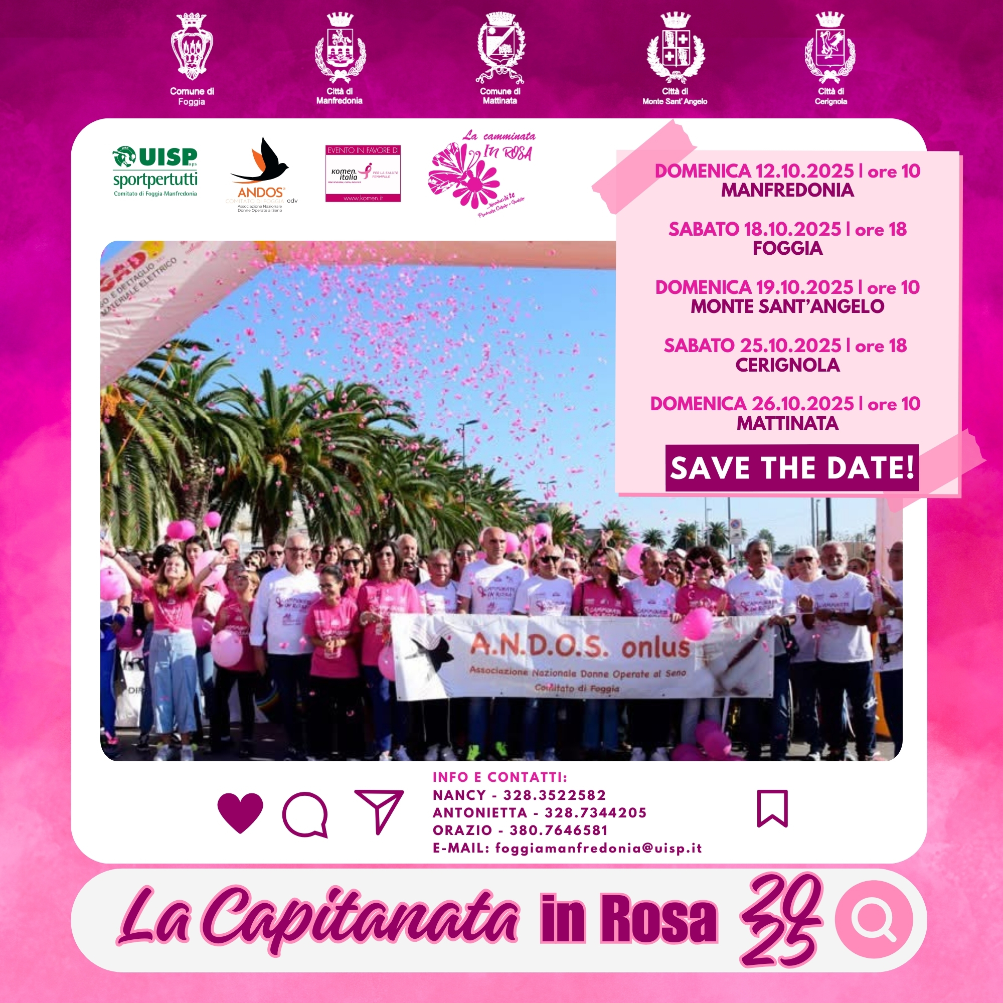 Camminiamo insieme, vestiti di rosa, per ricordare che la prevenzione salva la vita e che la forza delle donne è la forza di tutti noi.