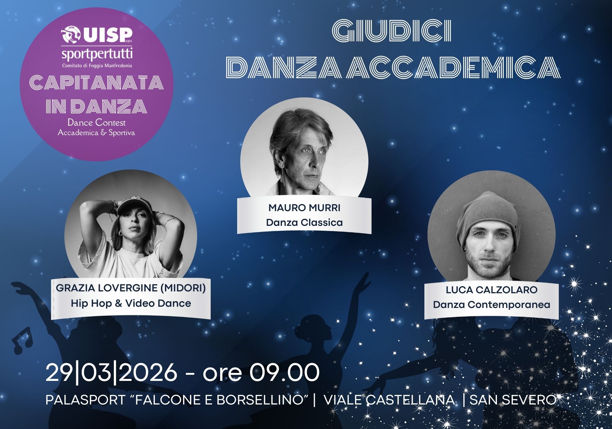 Per la Danza Accademica la giuria sarà composta da figure di riferimento nel panorama nazionale della danza, chiamate a valutare tecnica, interpretazione, presenza scenica e qualità coreografica: