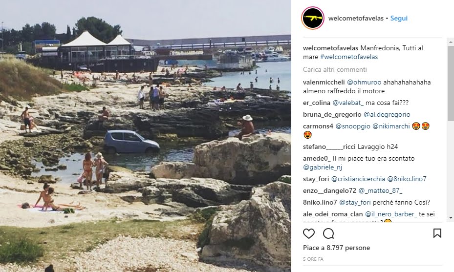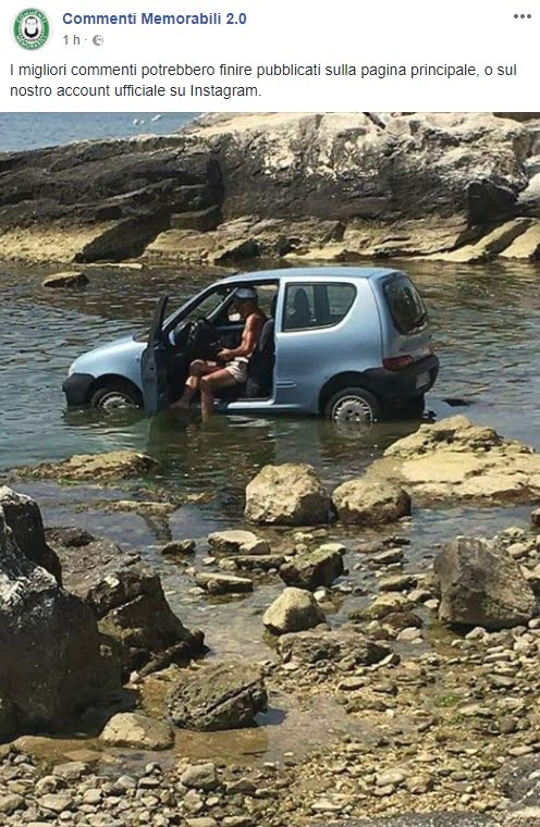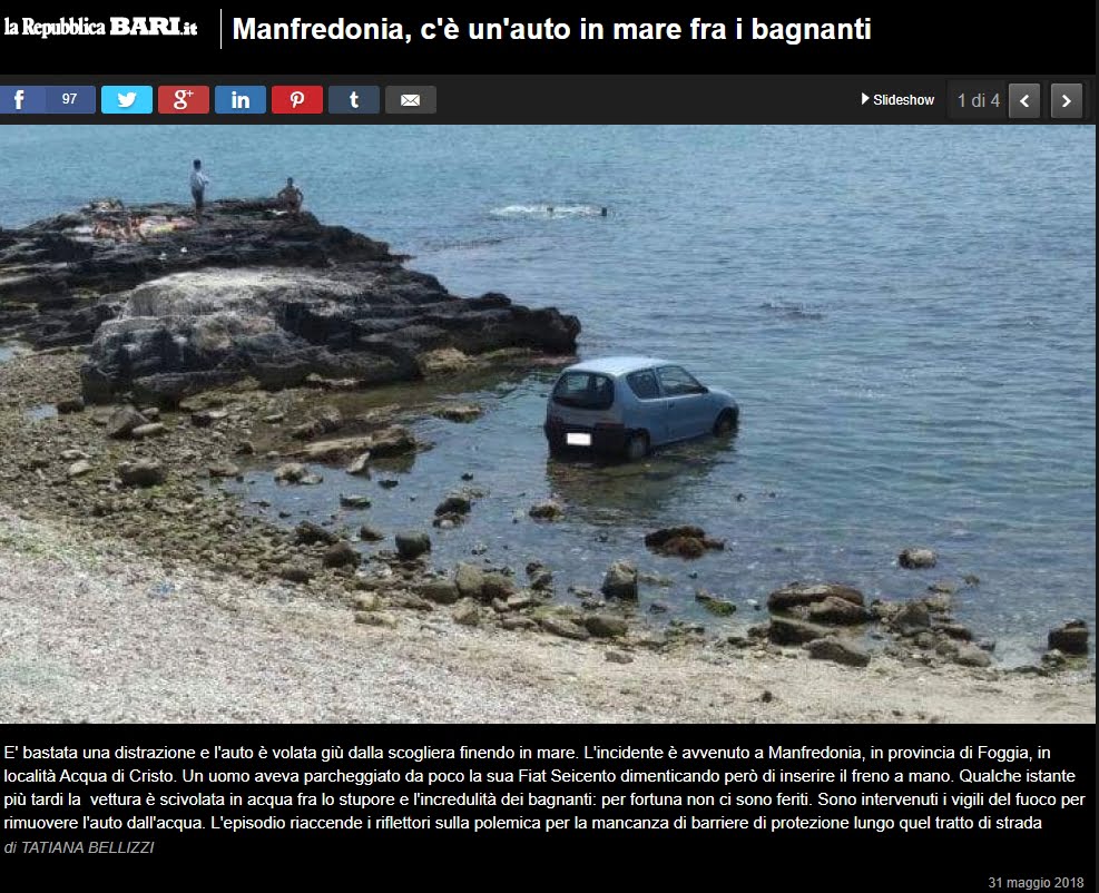 La foto della Fiat 600 in mare tra gli scogli dell’Acqua di Cristo di Manfredonia ci ha messo poco a fare il giro del web