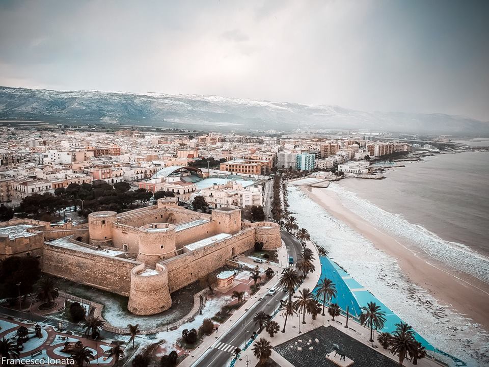Da questa notte a Manfredonia, come da previsioni, la neve fiocca lentamente ed ha imbiancato strade, palazzi, monumenti e spiagge della città. Foto dal web