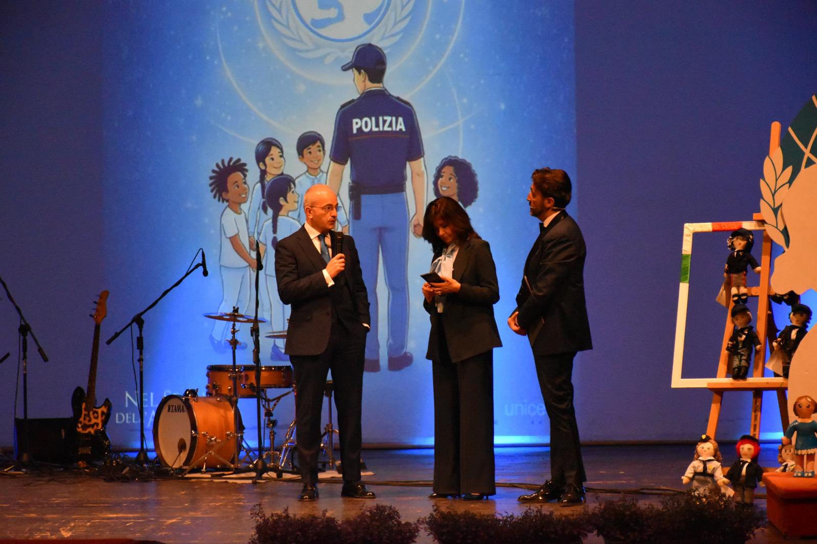 La Polizia di Stato incontra l’Unicef (di cui quest’anno ricade l’ottantesimo) una rotta che le due istituzioni hanno tracciato insieme sin dal 2008, quando hanno deciso di condividere iniziative per sostenere i diritti di chi non ha voce. Ed in occasione del 174 anniversario della Polizia di Stato, la Questura di Foggia, ha inteso spendersi sul territorio per l’Unicef Comitato locale, organizzando un evento che si è svolto sabato scorso al teatro Umberto Giordano di Foggia dal titolo “Nel Segno dell’Azzurro” che ha visto una larghissima partecipazione di pubblico .