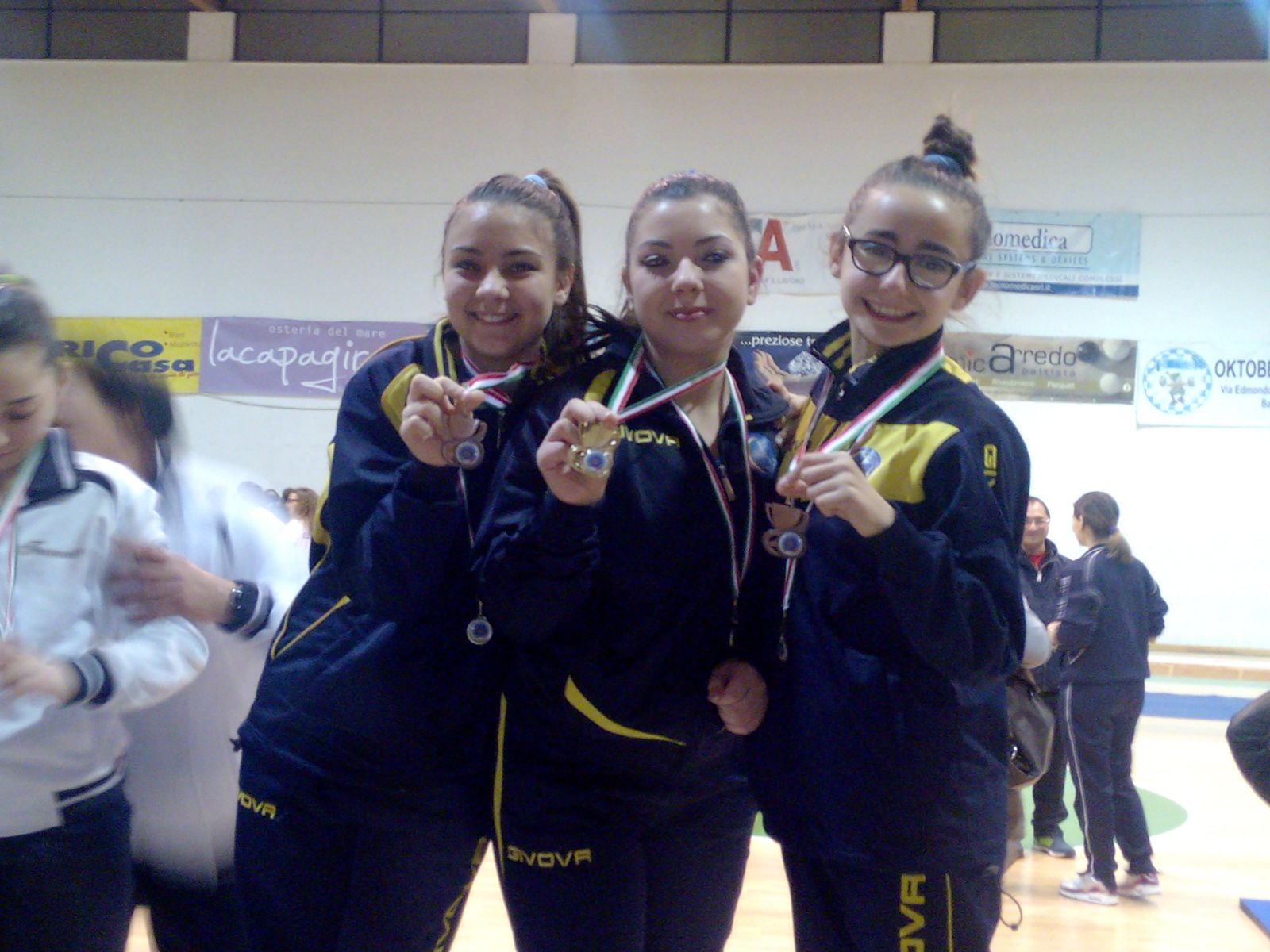 Il tecnico Dayana Totaro non poteva sperare in un risultato migliore per le sue atlete, tre su tre che hanno partecipato si sono qualificate tra le migliori ginnaste della regione, salendo sul podio e regalando forti emozioni anche a tutto il pubblico che riempiva il palazzetto.